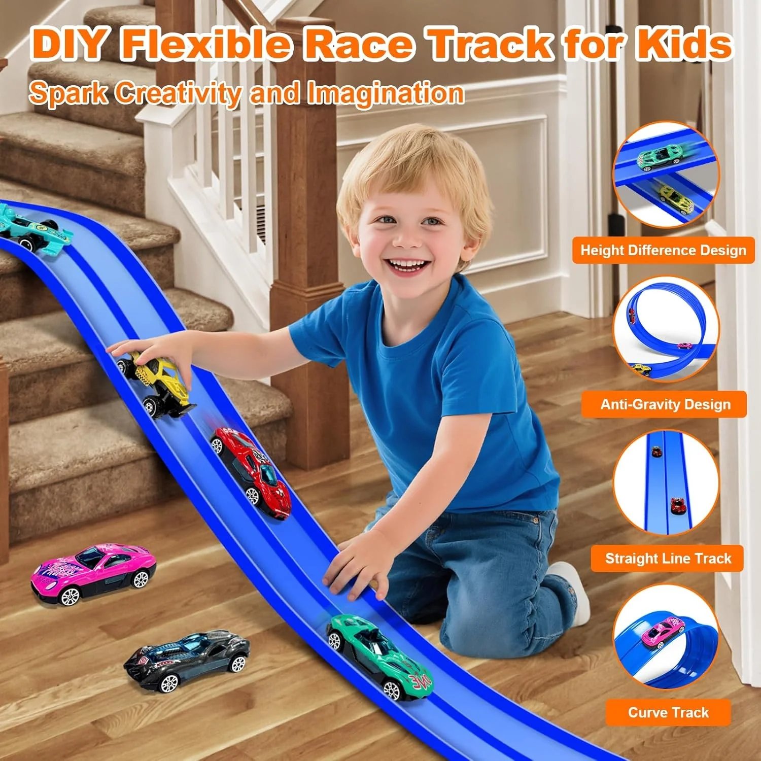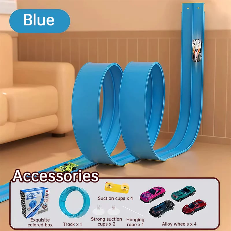 Unleash a 15ft flexible track that bends into ANY shape—loops, twists, wall - climbing ramps! Set up in 30 seconds, tear down just as fast. Perfect for indoor/outdoor play—turn floors, backyard, even stairs into a speedway. Kids 3+ design their own courses, fueling creativity and non - stop active fun.