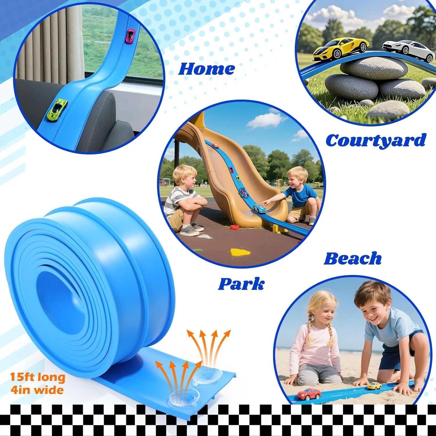 Whether playing in the living room, backyard, park, or at the beach, kids can create custom tracks and watch their favorite toy cars zoom by! Say goodbye to race car tracks—flexible tracks let them build steep ramps, dramatic drops, sharp turns, and high-speed straights. Encourages creativity, problem-solving, and independent play.