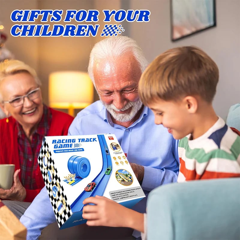 🏎️No more boring race tracks—this 15ft flexible racing track sticks to windows, walls, and floors with super-strong suction cups, creating loops, twists, and epic drops in seconds! Compatible with Hot Wheels & Matchbox, it’s endless fun for kids 3+ and the ultimate gift for car lovers. 🎁